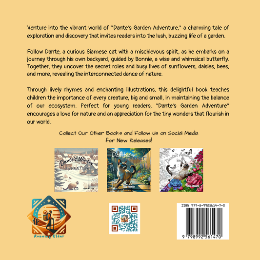 Join Dante, a curious Siamese cat, as he embarks on a magical exploration of his lush garden home. Guided by Bonnie, a cheerful butterfly, Dante discovers the unique beauties and vital roles of various garden plants—from towering sunflowers and modest daisies to luminescent buttercups and fragrant lavender.